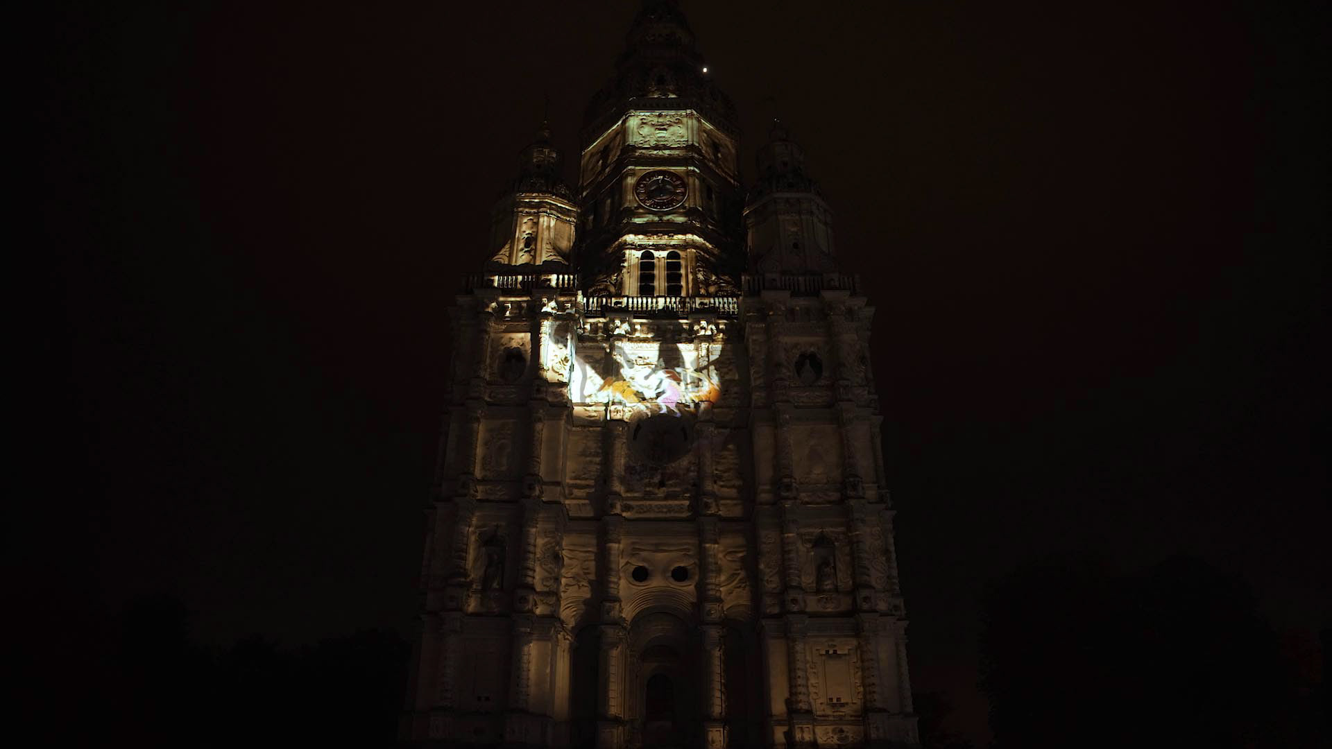 La façade de la Tour abbatiale se transforme en reliquaire, gardien d’objets issus du passé de Saint-Amand-les-Eaux. Lorsque l’horloge sonne les 12 coups de minuit, les portes s’ouvrent et les objets s’animent…